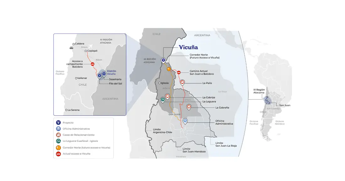 El objetivo es maximizar sinergias para transformar el distrito Vicuña en un complejo minero multigeneracional, con potencial para generar valor transformador a largo plazo. Centrado en cobre, oro y plata, el proyecto cuenta con recursos de escala mundial (confirmados en mayo de 2025) de más de 13 millones de toneladas de cobre medido e indicado (más 25 Mt inferidos), 32 millones de onzas de oro y 659 millones de onzas de plata.