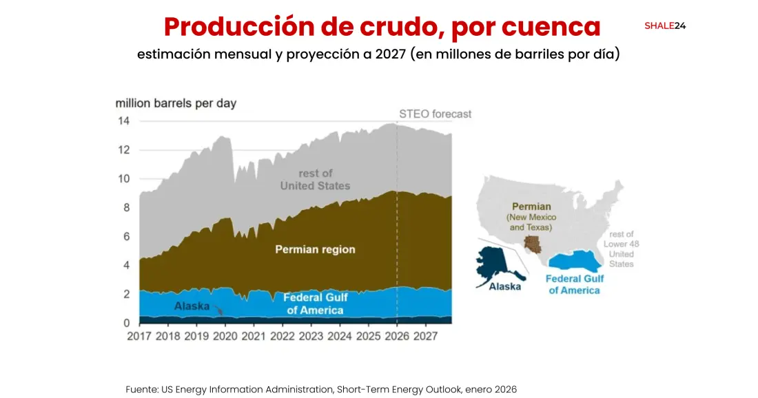 Con precios del crudo por debajo de los u$s60, la producción del Permian se mantendrá relativamente plana durante 2026, mientras los operadores pivotan hacia el gas natural impulsados por la demanda de exportaciones de GNL y el consumo de centros de datos de IA. Expertos anticipan un posible rebote en 2027 si se materializa un déficit de oferta global.