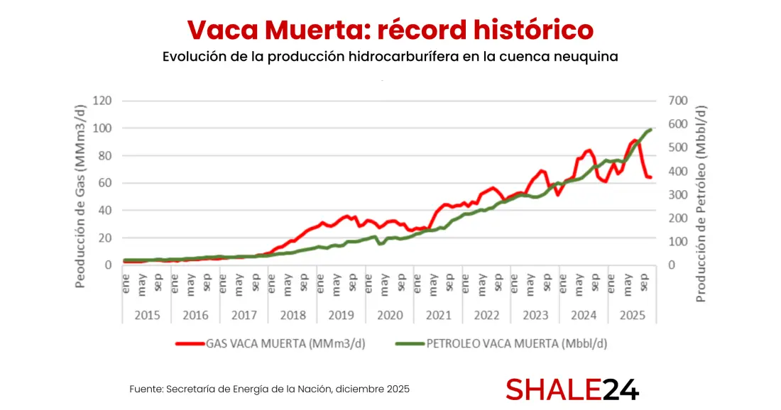 En 2025, Vaca Muerta se consolidó como el núcleo indiscutido de la producción de hidrocarburos a nivel nacional. De acuerdo a los últimos datos publicados por la Secretaría de Energía, la cuenca neuquina ya concentra el 70% del petróleo y el gas producidos en el país.