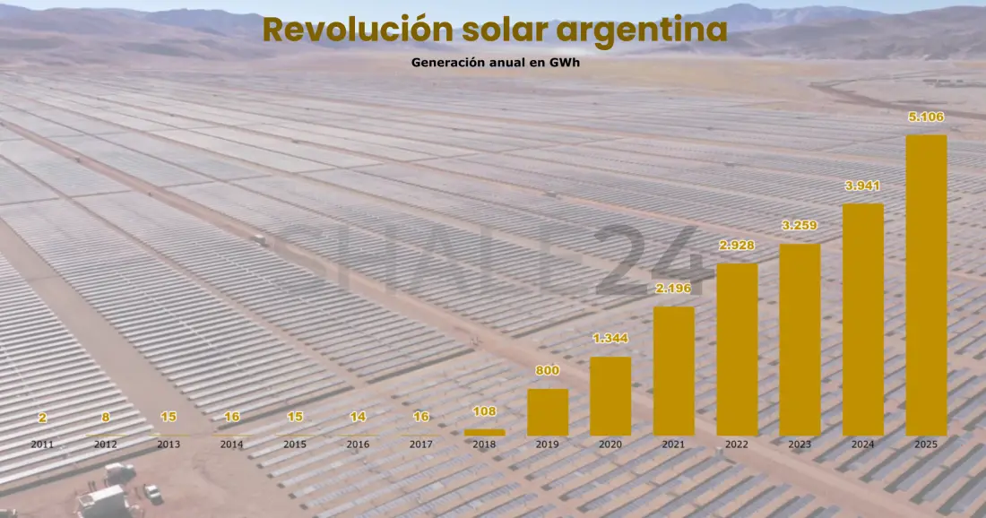 Si retrocedemos apenas una década, la perspectiva es asombrosa: en 2015, Argentina apenas producía 15 GWh de energía solar, lo que significa que el país multiplicó por más de 340 veces su capacidad de aprovechar el recurso solar en apenas 10 años.