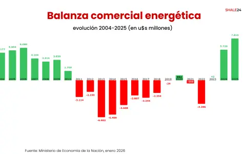 En 2025 Argentina registró el mayor superávit comercial energético de su historia. En los próximos años esta marca podría superarse a medida que se desarrollen los proyectos aprobados y en evaluación a través del RIGI. Algunos analistas prevén una balanza energética que genere, en conjunto, u$s48 mil millones para 2030 y u$s67 mil millones para 2035